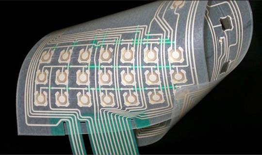 I circuiti flessibili vengono realizzati mediante deposizione serigrafica di pasta conduttiva (a base argento) su film di poliestere. Parte elettrica delle tastiere a membrana, trovano impiego come semplici circuiti dov'è necessario contenere gli ingombri e/o collegare più componenti su piani diversi.